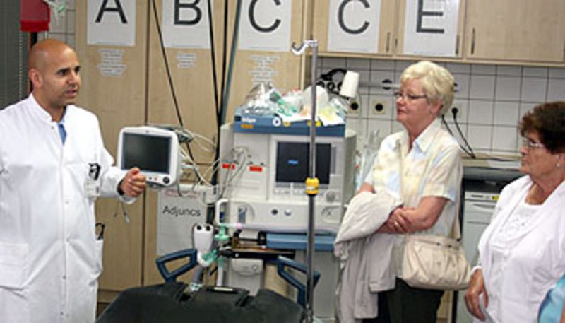Der Besuch des Schockraums, in dem für schwerstverletzte Patienten lebensrettende Sofortmaßnahmen erfolgen, stand ebenso auf dem Besuchsplan wie der Blick hinter die Kulissen der Interdisziplinären Notaufnahme, durch die Chefarzt Dr. Kurosch Moussazadeh führte.