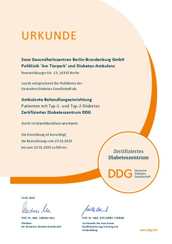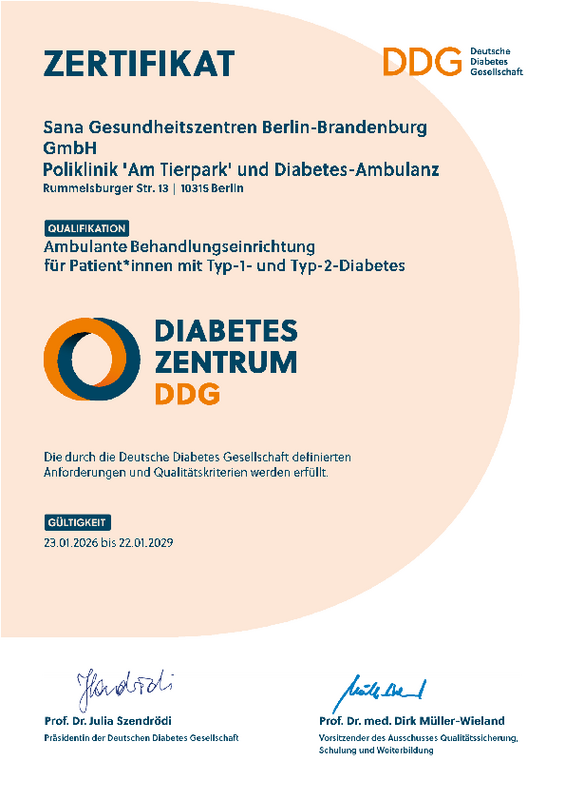 Praxis für Diabetologie, Zertifiziertes Diabeteszentrum DDG