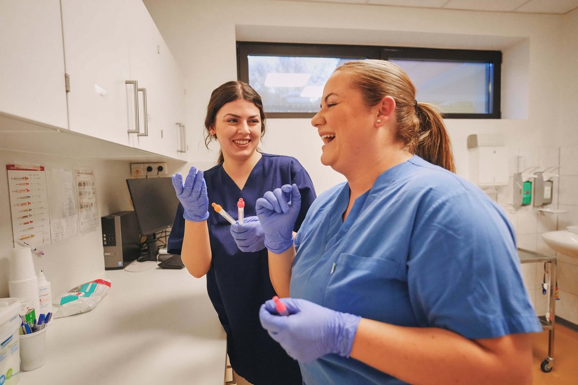 Bei den Sana Gesundheitszentren erwartet Dich eine fachübergreifende Ausbildung mit exzellenten Chancen auf Übernahme nach Beendigung der Ausbildung sowie regelmäßiger Austausch mit anderen Auszubildenden. Wir bieten Ausbildungsplätze für Medizinische Fachangestellte in Arztpraxen unterschiedlicher Fachrichtungen, z.B. Haus- oder Kinderarztpraxen, Kardiologie, Gynäkologie und viele mehr. Die Ausbildung findet in einer ausgewählten Praxis statt.