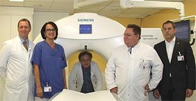 Jährlich werden rund 7.000 Patienten mit dieser bildgebenden Diagnostik untersucht. Dabei profitieren nicht nur polytraumatisierte oder Notfall-Patienten von dem neuen Diagnoseverfahren, sondern auch Patienten der Kardiologie und Gefäßchirurgie. „Mit der neuen Technik können Blutgefäße im Gehirn ebenfalls zuverlässig dargestellt werden. Es ist uns damit möglich einen Schlaganfall bereits in einem sehr frühen Stadium nachzuweisen“, betont Dr. Hubert Topp, Chefarzt der Kardiologie und ergänzt „Mit dem CT sind auch neue Anwendungen denkbar, wie zum Beispiel für Untersuchungen am schlagenden Herzen oder von Herzkranzgefäßen. So lassen sich Koronargefäße darstellen, was den Patienten eine Untersuchung im Herzkatheterlabor ersparen kann. Auch für die Vorbereitung von Herzklappeneingriffen ist das neue Gerät exzellent einsetzbar.“ Begeistert sind die Ärzte auch von den Eingriffsmöglichkeiten unter CT-Durchleuchtung. „Mit dieser exakten und schnellen Bildgebung können wir während des Eingriffs ein 3D-Bild der entsprechenden Körperpartie erzeugen“, so Chefarzt Dr. Heidersdorf. Von der besseren Bildgebung profitieren auch die behandelnden Ärzte der Schmerztherapie. „Nerven können mit einem Medikament effektiver umspritzt werden. Als Arzt habe ich die Möglichkeit, die Kanüle in nächster Nähe zum Nerv zu platzieren. Damit lassen sich zum Beispiel chronische Rückenschmerzen noch besser behandeln“, erläutert Dr. Eyad Al Kahlout, Neurochirurg der Klinik für Orthopädie und Unfallchirurgie.