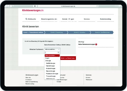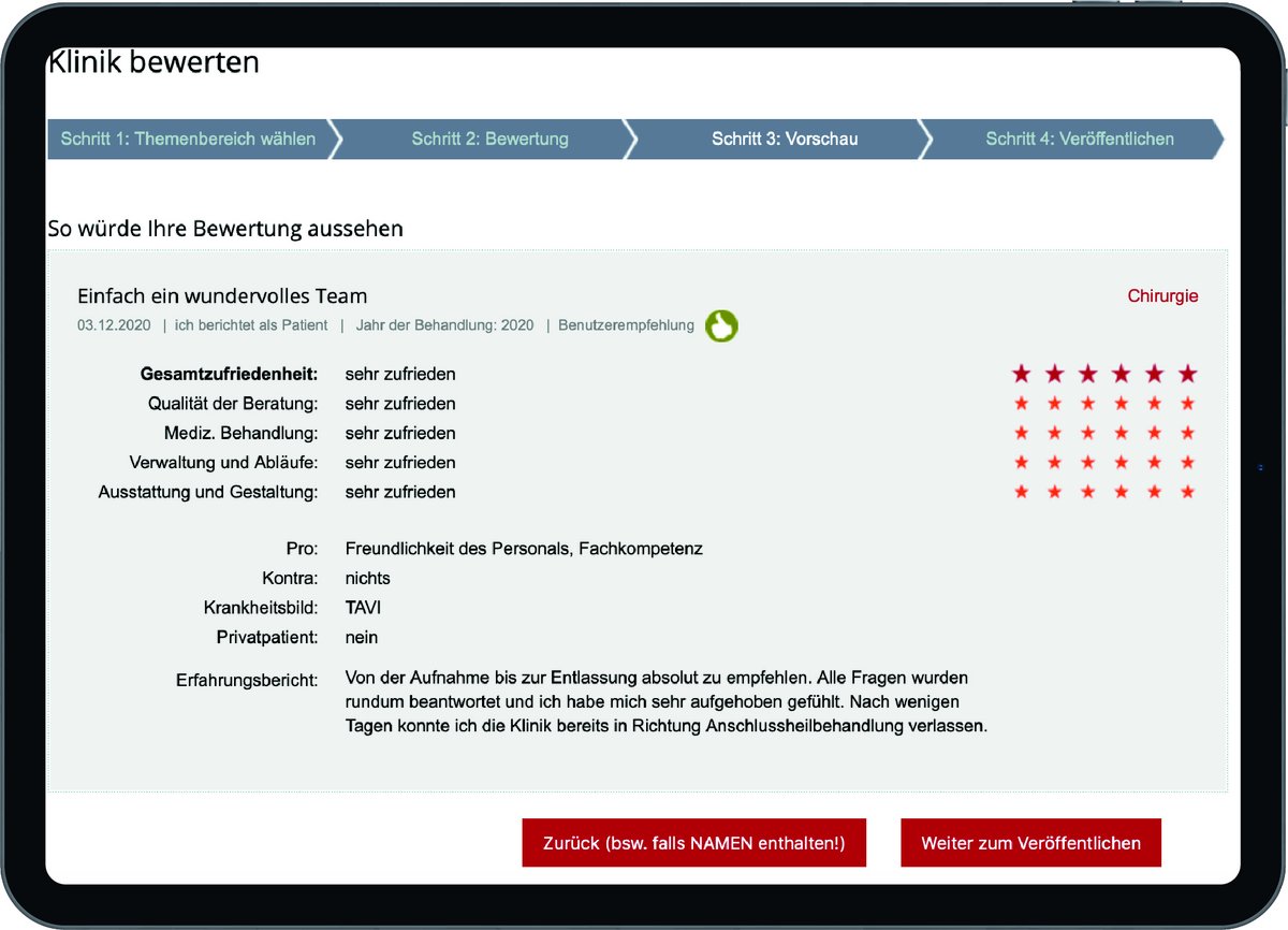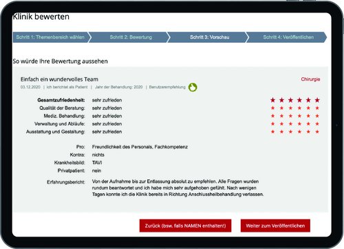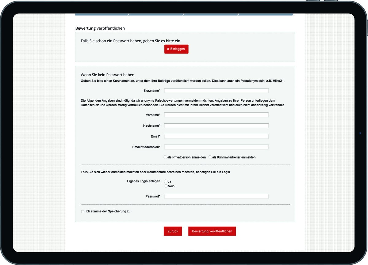 Benötigen Sie Unterstützung? Wir zeigen Ihnen am Beispiel der Seite "Klinikbewertungen.de" gern in 5 einfachen Schritten, wie Sie eine Bewertung abgeben können.