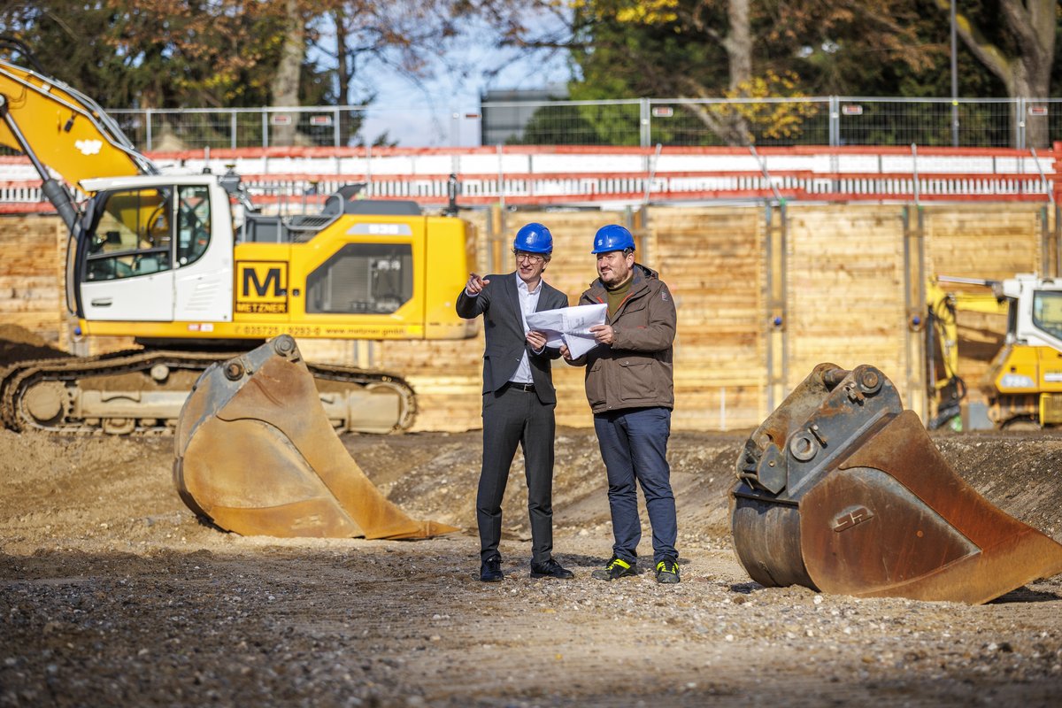 Mit dem Abschluss der Baugrube begann die nächste Phase des Großprojekts. Noch vor Beginn 2026 startete die bereichsweise Grundwasserabsenkung, um die Errichtung der Untergeschosse vorzubereiten. Anfang 2026 folgen die Rohbauarbeiten mit dem Aufbau der Kräne und der Herstellung der Bodenplatte. Der Neubau entsteht im geplanten Zeitrahmen, die Fertigstellung des Klinikgebäudes ist weiterhin für Ende 2029 vorgesehen.