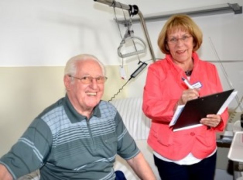 Meist nimmt Erika Winkel jeweils zwei Tage vor der Entlassung Kontakt zu den Patienten auf. „Was würden Sie hier ins Gästebuch schreiben?“, lautet eine der meist gestellten Fragen zum Einstieg ins individuelle Gespräch. Anschließend zückt sie Bleistift und einen mit 17 Fragen gespickten Bogen, der sich inhaltlich an der bundesweiten AOK-Patientenbefragung orientiert. „Wie beurteilen Sie den Umgang der Ärztinnen und Ärzte?“, „Wurden Ihre Wünsche und Bedenken in der ärztlichen Behandlung berücksichtigt?“ und „Wie schätzen sie die Qualität der medizinischen Versorgung ein“ sind Fragen zur Versorgung. Weitere beschäftigen sich mit der pflegerischen Betreuung, dem Aufenthalt und dem aktuellen Gesundheitszustand.