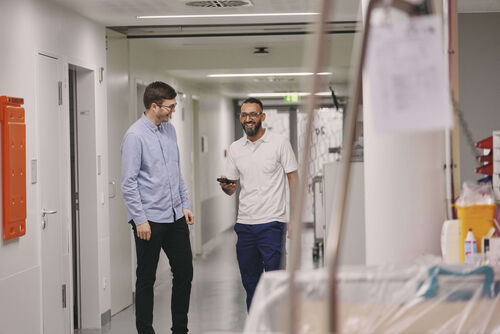 Das Bild zeigt zwei Mitarbeiter bei der Arbeit.