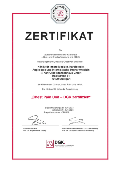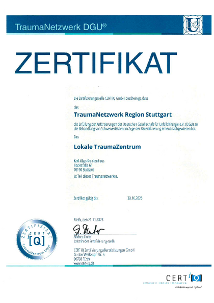 Dieses Zertifikat wurde dem Karl-Olga-Krankenhaus überreicht - als Zeichen für ein ausgezeichnetes Qualitätsmanagement und eine sehr hohe Prozessqualität.