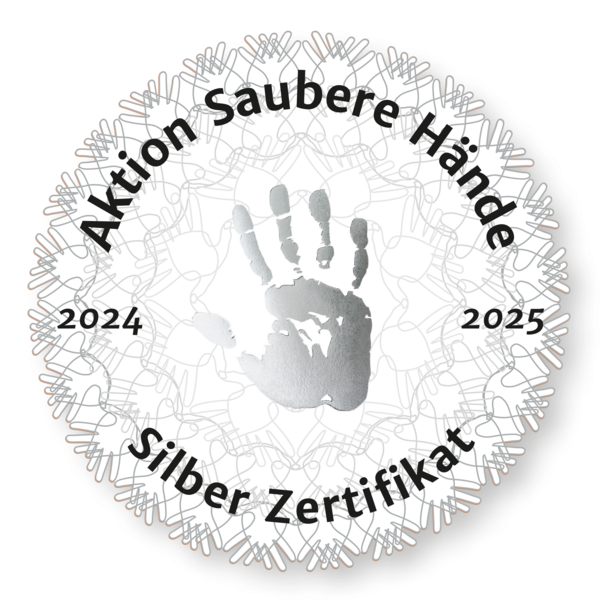 Für den Infektionsschutz von Patienten ist die Händedesinfektion von zentraler Bedeutung. Alle Klinikmitarbeiter werden systematisch in der Händehygiene geschult. Für jede Station messen wir die Verbräuche von Händedesinfektionsmitteln und die Einhaltung der Händehygieneregeln durch die Mitarbeiter. Als langjähriges Mitglied unterstützen wir das Aktionsbündnis „Saubere Hände“.