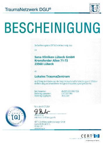 Qualität in Medizin und Pflege sind uns sehr wichtig. Unsere Klinik ist mit beiden Standorten in Lübeck und Travemünde nach DIN EN ISO 9001: 2015 zertifiziert.