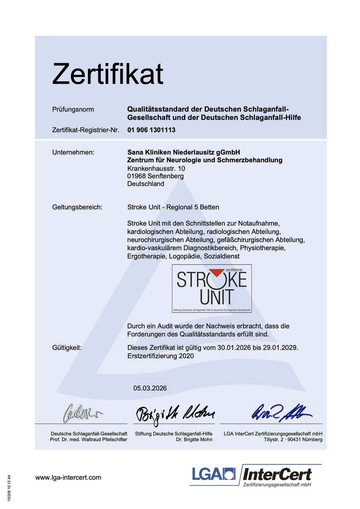 Die Abteilung verfügt über sieben voll monitorisierte Überwachungsbetten sowie 13 Betten für die stationäre postakute Weiterbehandlung von Schlaganfallpatienten. Es besteht in beiden Bereichen eine sehr enge interdisziplinäre Zusammenarbeit zwischen den neurologischen, angiologischen und kardiologischen Ärzten, die gemeinsam für eine optimale Versorgung der Schlaganfallpatienten sorgen. Die gefäßchirurgische Abteilung garantiert rasche operative Interventionsmöglichkeiten bei hochgradigen Verengungen und Verschlüssen hirnversorgender Blutgefäße. Die neurochirurgische Abteilung gewährleistet eine angemessene operative Versorgung bei großen Gehirnblutungen und raumfordernden Hirninfarkten.