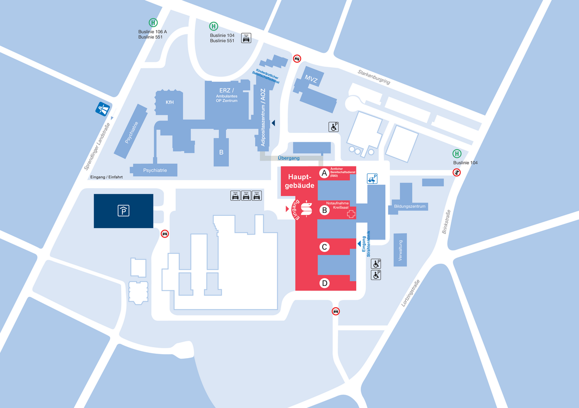 Unsere Praxis befindet sich im Hauptgebäude, Ebene 1, Bereich B. Melden Sie sich hier bitte bei der Leitstelle 1.