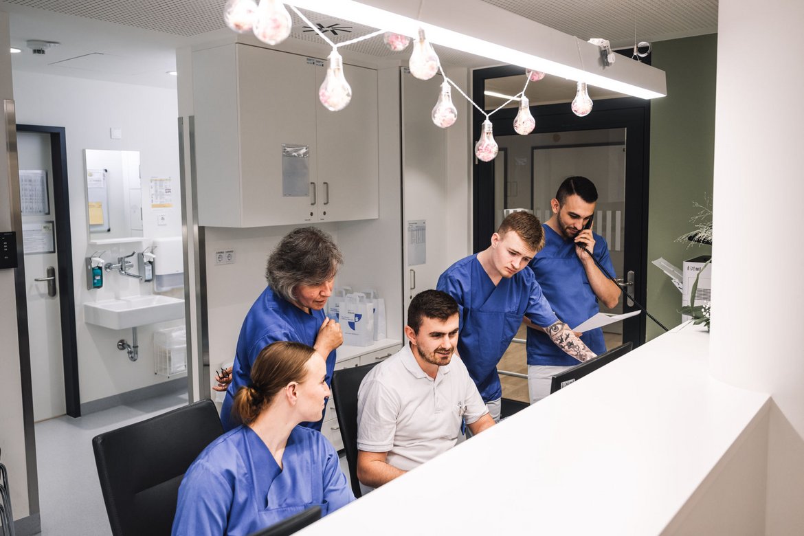 Darüber hinaus bieten wir praxisnahe Pflegeimpuls-Kurzschulungen direkt auf den Stationen an. Diese Schulungen dauern etwa 20 Minuten und ermöglichen es, pflegerelevante Themen kompakt, alltagsnah und ohne großen organisatorischen Aufwand in den Arbeitsalltag zu integrieren. So können Inhalte schnell aufgefrischt und unmittelbar in der Praxis umgesetzt werden. Uns ist es hierbei wichtig, dass der Mitarbeiter Interesse an dem Thema hat und dieses als Impuls vor oder nach dem Dienst erfolgt.