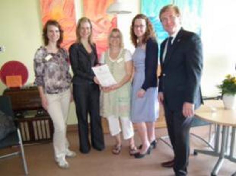 Das Qualitätssiegel "Service Qualität Deutschland" wird im Rahmen des gleichnamigen Projektes von der DEHOGA in Zusammenarbeit mit dem Institut für Management und Tourismus der Fachhochschule Heide verliehen. Simone Buuck, die die Zertifizierungsurkunde überbrachte, freute sich, das erste Mal überhaupt ein Hospiz in Schleswig-Holstein auszeichnen zu dürfen. Ziel des Projektes der Fachhochschule ist in erster Linie die nachhaltige und kontinuierliche Verbesserung der Servicequalität von Dienstleistern aller Art, u. a. auch im sozialen Bereich. Gefördert wird das Projekt vom Land, der Industrie- und Handelskammer sowie der Wirtschaftsförderungsgesellschaft Nordfriesland.
