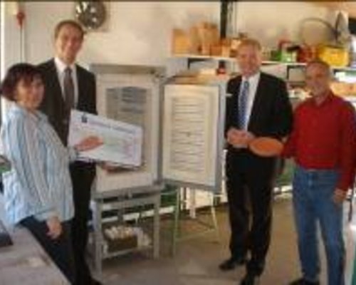 Appen-Etz, 01.Oktober 2010. Spende des Sanitätshauses ermöglicht Reparatur des Brennofens.Der Betriebsleiter des Sanitätshauses Pinneberg, Sascha…