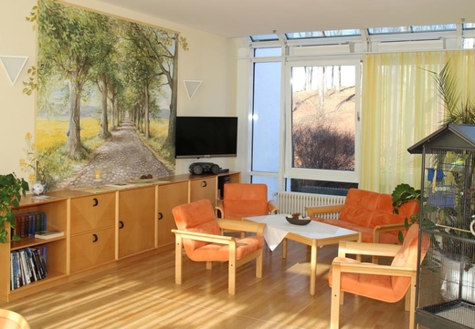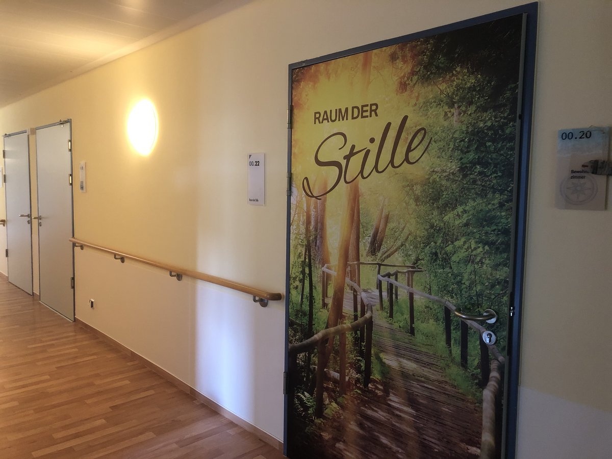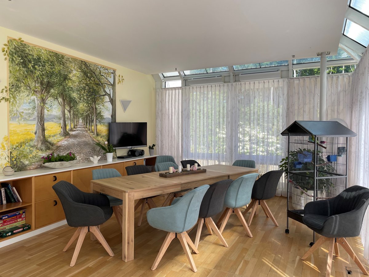 Gehen Sie mit uns durch unser Hospiz. Wir zeigen Ihnen die Zimmer, den Wintergarten und den Raum der Stille.